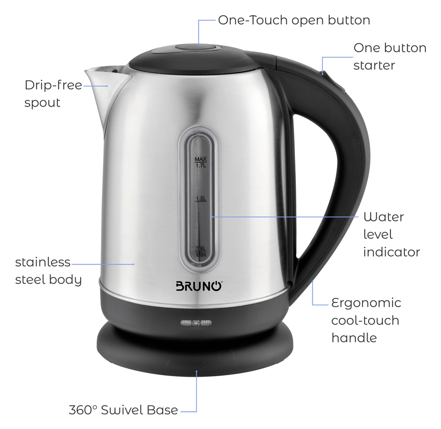 BRUNO Ηλεκτρικός βραστήρας BRN-0029, 2200W, 1.7lt, βάση 360°