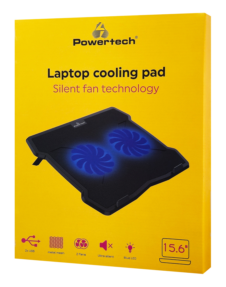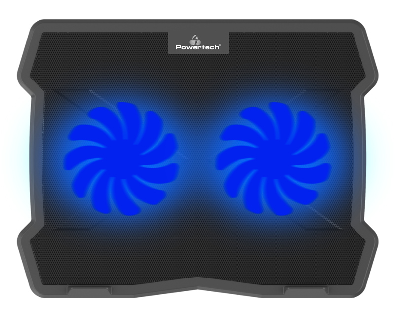 POWERTECH Βάση & ψύξη laptop PT-930, έως 15.6", 2x 125mm fan, LED, μαύρο